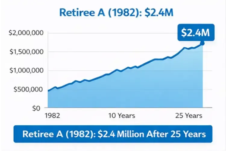 Retiree A: Retired in 1982, before a bull market. After 25 years, they still had $2.4 million left.
